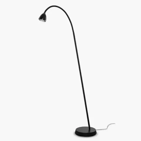 Standleuchte aus Aluminium / 25 – 100° stufenlos einstellbarer Abstrahlwinkel durch Glaslinsenoptik / robuste Flexwelle mit gebürsteter Aluminiumoberfläche oder farbigem Textilüberzug / Tastdimmer am Rohr / Standfuß aus satiniertem Edelstahl / Zuleitung 150 cm transparent / Betrieb über jede 2A USB Buchse möglich / inkl. USB Steckernetzteil