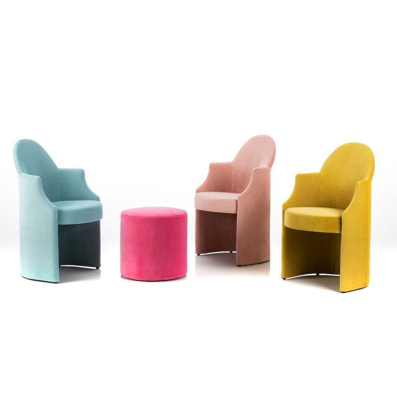 armand ist außergewöhnlich. Die aparte Form des Stuhlsessels beinhaltet Anklänge an Jugend- und Empirestil, stellt diese aber in einen neuen Kontext. Die halbkreisförmige Schale, die den Stuhlrücken und den Fuß bildet, nimmt zugleich die kreisrunde Sitzbasis auf und gibt ihr den konstruktiv erforderlichen Halt. So wirkt das Design gleichermaßen vielschichtig und transparent. Am Esstisch fungiert armand als Stuhl, neben einem Sofa nimmt er mit seinen rundum textilen Oberflächen den Charakter eines Sessels an. Da er zudem handlich im Maß und leicht zu bewegen ist, lässt sich armand überaus vielseitig einsetzen und kombinieren. Optional auch mit Rollen statt Gleitern oder mit einem passenden Hocker.