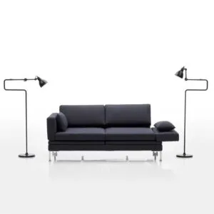 Smart konzipiert: Ein schlankes Design sowie vorschwenkbare Armlehnen und verstellbare Rückenlehnen machen fold out überragend vielseitig und anpassungsfähig. Beide Sitze lassen sich separat zum Entspannen einstellen. Die filigrane Basis aus Metall und die glatten Polster lenken den Blick auf die klare, horizontal betonte Form von fold out. Bei vorgeschwenkten Armlehnen werden an den Seiten praktische, als Stellfläche nutzbare Holzeinlagen sichtbar. Senkt man die Armlehnen aus der Grundposition heraus zur Seite ab, so wandelt sich das Sofa zum Daybed. Durch vollständiges Absenken aller Lehnen wird fold out zur bequemen Liegefläche von 145 x 200 cm.