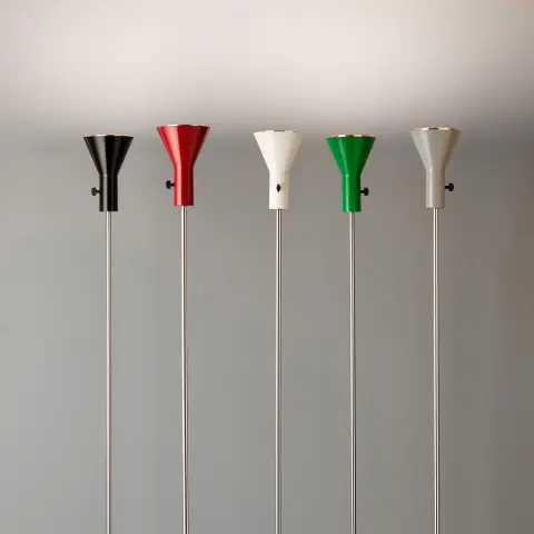 Der Deckenfluter ES 57 LED ist bereits im Jahr 1958 vom deutschen Achritekt Egon Eiermann entworfen worden und ist von Tecnolumen um aktuelle LED Technik erweitert worden. Mit lediglich 19 Watt erzeugt die leistungsstarke LED genügend Licht für viele Räume. Über einen simplen Dimmer am Kopf der ES 57 LED lässt sich die LED vom Deckenfluter stufenlos dimmen und optimal an die Bedürfnisse anpassen. Kopf und Fuß sind immer gleich lackiert – der Stab der Stehleuchte immer verchromt. Jeder ES 57 LED Deckenfluter wird von Tecnolumen fortlaufend numeriert.
