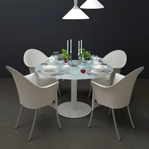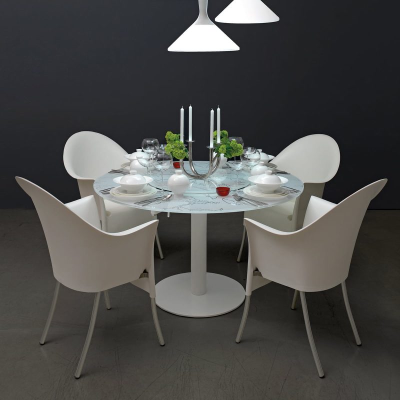 Anfangs war Lord Yo einfach ein Sessel aus Polypropylen mit einer Aluminiumstruktur, heute ist er eine Ikone. Überall und von jedem erkannt und erkennbar. Es brauchte Philippe Starck, um solch einen außergewöhnlichen Stunt durchzuführen, mit weichen Kurven und erhöhter Rückenlehne, fast ein Thron, und leicht gebogenen Beinen. Dann dachte er daran, ihn manchmal mit einem weißen Schonbezug zu bedecken, der nicht verbirgt, sondern enthüllt. Einzigartig sogar innerhalb des Designkorpus von Philippe Starck.